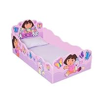 Dora the Explorer Wooden Toddler Bed Featuring Dora the Explorer with soft pastel colors, the Dora the Explorer Wooden Toddler Bed from Delta Luv is just what your little one wants for their bedroom. Made of solid wood construction, the Toddler Bed uses a standard crib mattress. Delta has included a removable safety rail, as well as a center leg for extra support and protection. The fine details on the bed frame will make any child's bedroom stand out. Order the Dora the Explorer Wooden Toddler Bed today!