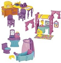 Get a surprise with the deluxe furniture sets for the Dora designer dollhouse as you snap in the hot spot accessories in to the dollhouse hot spots or ports on each of the furniture sets. Each set includes a main transforming furniture piece, a standalone electronic port, a hot spot accessory featuring phrases or SFX, a light up hot spot accessory and decorating items. The kitchen features an island that transforms into a breakfast nook, microwave that plugs into the counter, light, and more. Dora's bedroom includes a bed that transforms into a workspace, computer that plugs into the desk, lamp, and other decorating pieces. The bathroom includes a tub that transforms into a Jacuzzi, radio that plugs into the vanity, ceiling fan, toilet and other accessories. Ages 3+