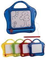 Fun but poorly made I bought two for my 2 1/2 year-old twins to enjoy. I leave them in their diaper bag and bring them out in church and in restaurants while waiting for our food. They love scribbling on them. However, the toys are not very durable. The clip for the magnetic pen is just a tiny piece of plastic and it broke off both of them the first day. My girls scribble on them a little roughly and the sketchers are already showing major signs of wear after only a few hours of actual use. The toys keep then well entertained though. I will have to replace them soon. Great Product, Fantastic Colors!!! This Magnetic Sketcher is just the right size for travel. The colors are fabulous and really eye catching. Not durable... The screen gets puncture holes/impressions in it easily. And, the string should be a bit longer so kids can have it reach the screen more easily as they growing in dexterity. I bought it for my 1 year old. He loves it, but we've had it 2 mos and it's ready to be thrown away.